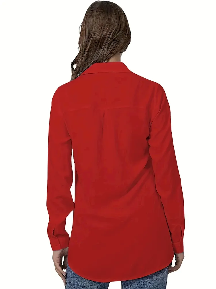 Women Casual Simple Solid Color Lapel Long Sleeve Blouse