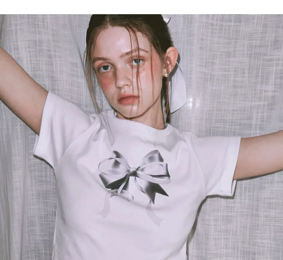 Women Fashion Casual Solid Color Bowknot Printed Round Neck Short-Sleeve T-Shirt