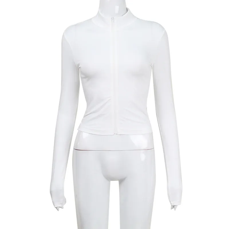 Women Fashion Sexy Long-Sleeve Zipper Slim-Fit Blouse