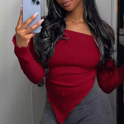 Women Fashion Sexy Swing Collar Long-Sleeve Slim-Fit Bodysuits